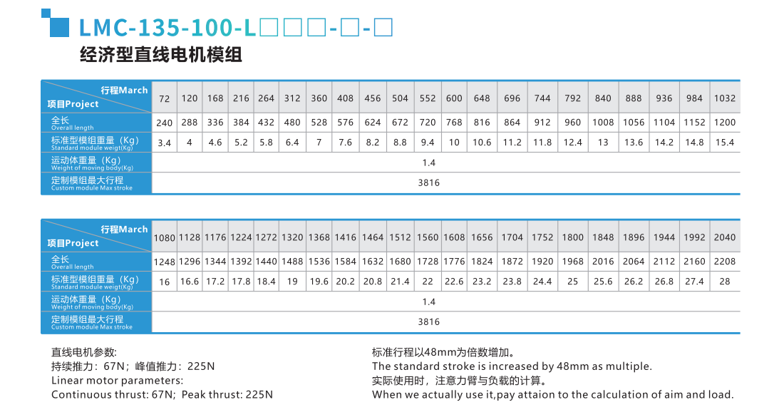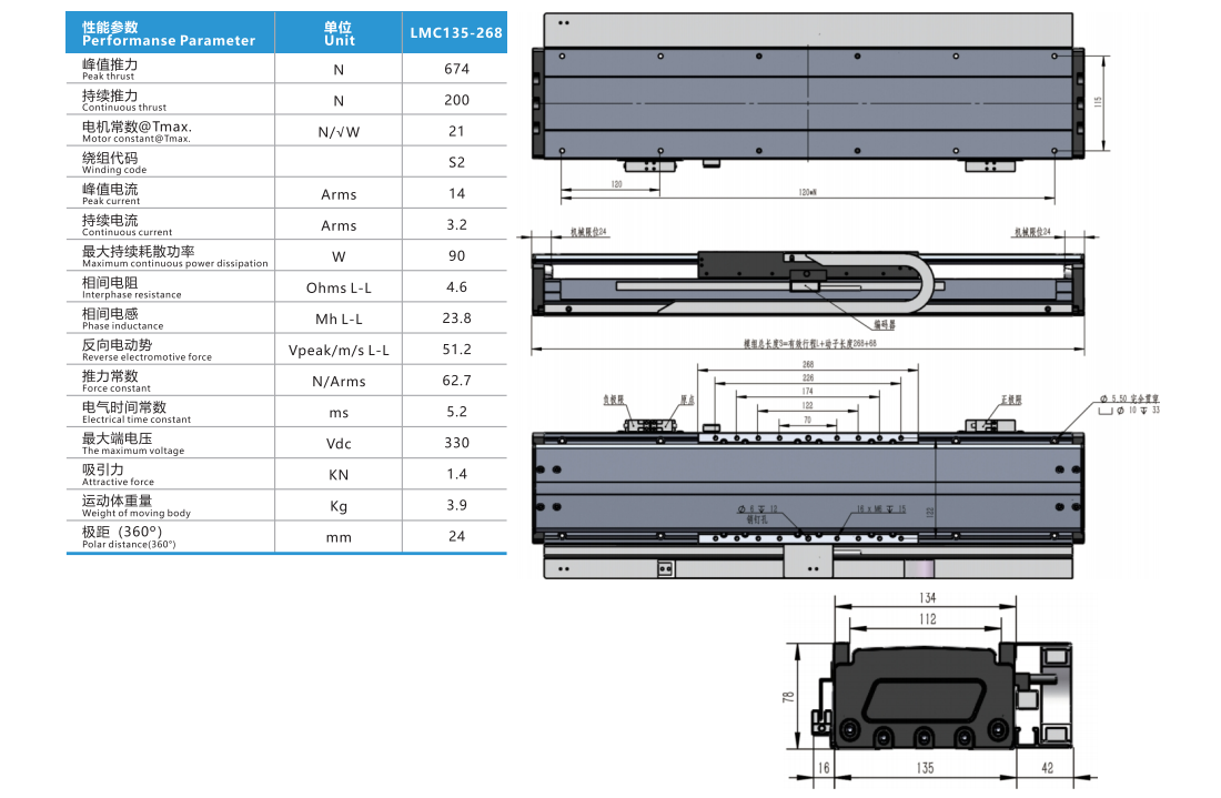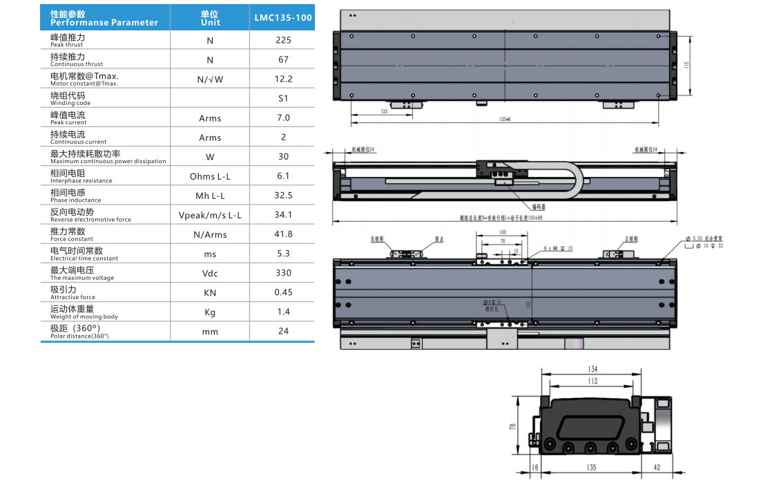 135系列經(jīng)濟型直線電機模組,采用全新的設(shè)計結(jié)構(gòu),配以高性能低損耗導(dǎo)磁材料作為精密繞組的導(dǎo)磁環(huán)路,專業(yè)的三維電磁場仿真優(yōu)化將電機本身由齒槽效應(yīng)和端部效應(yīng)引起的推力波動降到極低。創(chuàng)新性的設(shè)計使該系列直線電機能夠產(chǎn)生比傳統(tǒng)無鐵芯直線電機更高的推力密度,實現(xiàn)小體積,大推力,高精度,低成本。是傳統(tǒng)絲桿模組的理想替代方案。
