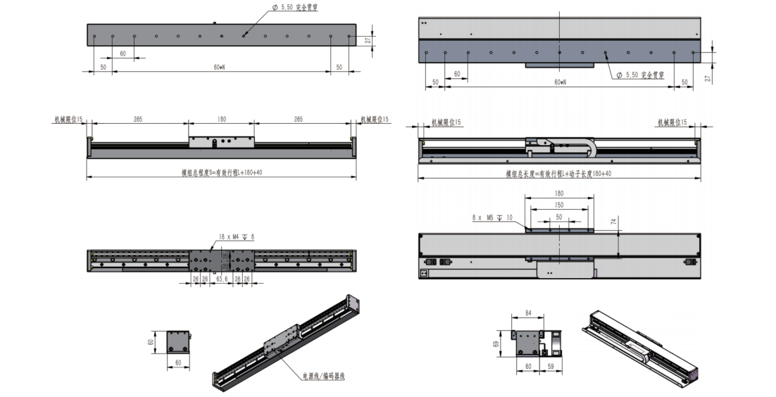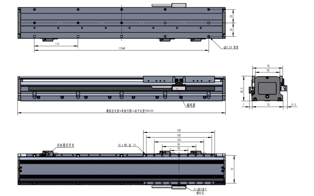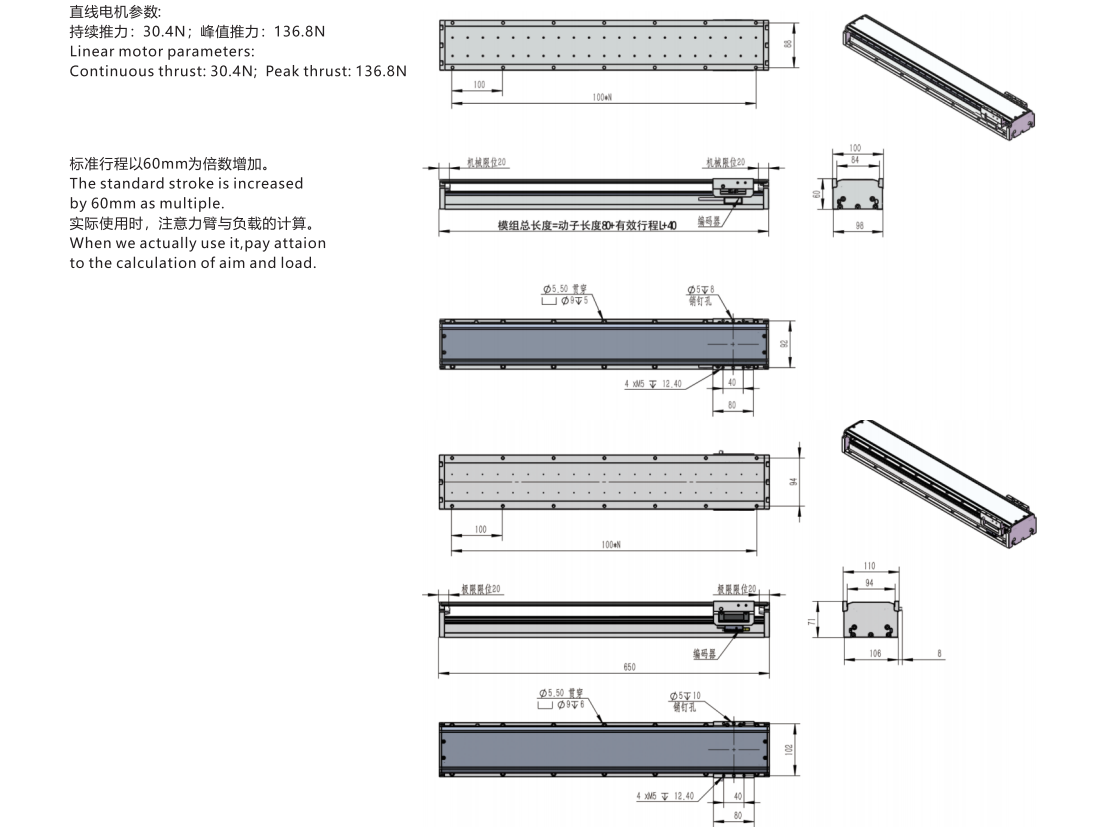 緊湊型直線電機模組同樣使用永磁同步直線電機,包括動子和模塊化的定子。